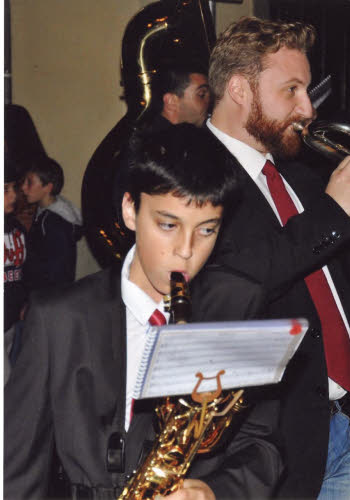 Giovane musicista si esibisce con la Banda in occasione della trentottesima edizione della Mostra Concorso delle vetrine organizzata nell'ottobre 2014.